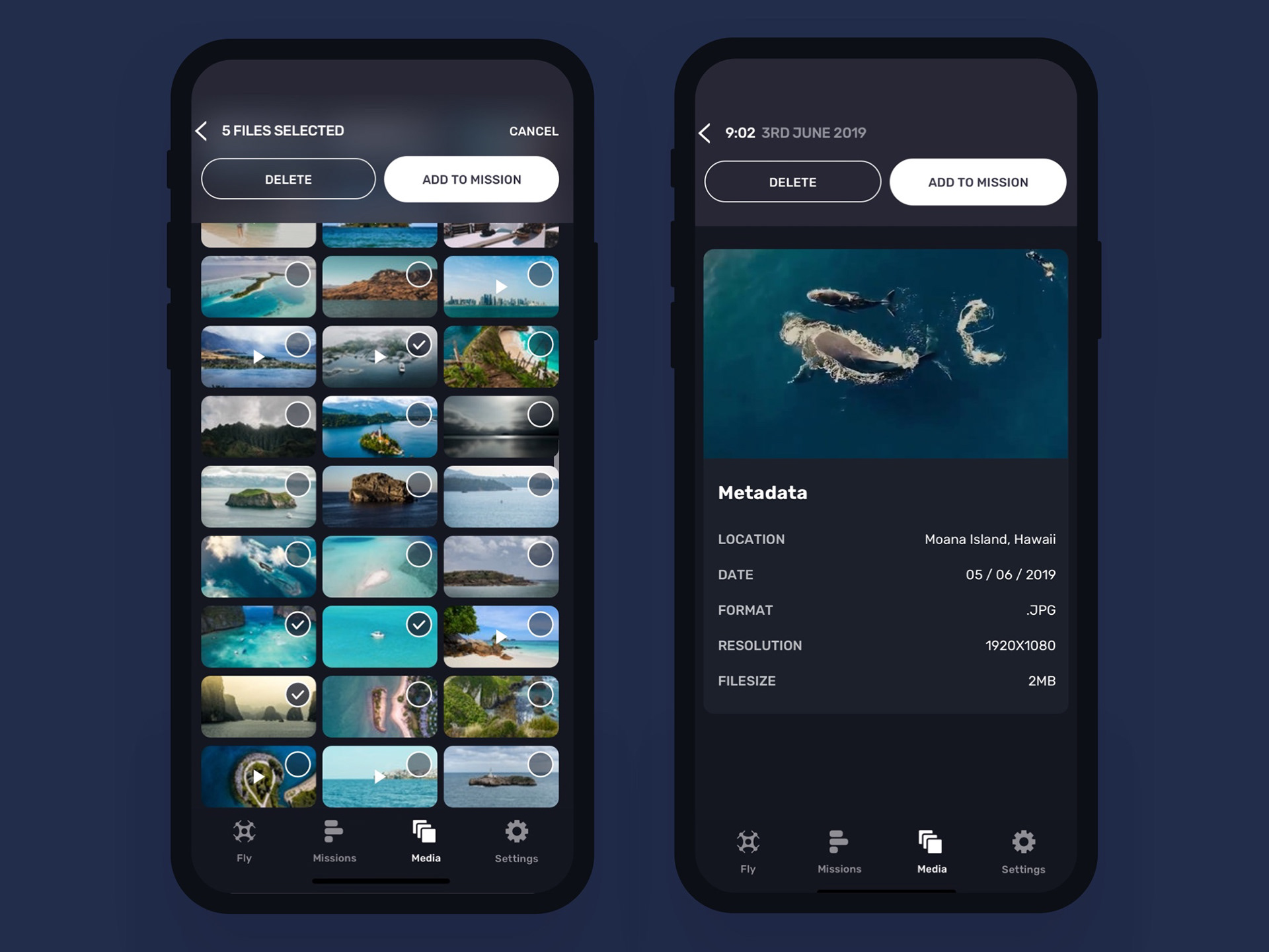 Native mobile application (iOS + Android) for project based import, management and sharing of drone media captures.