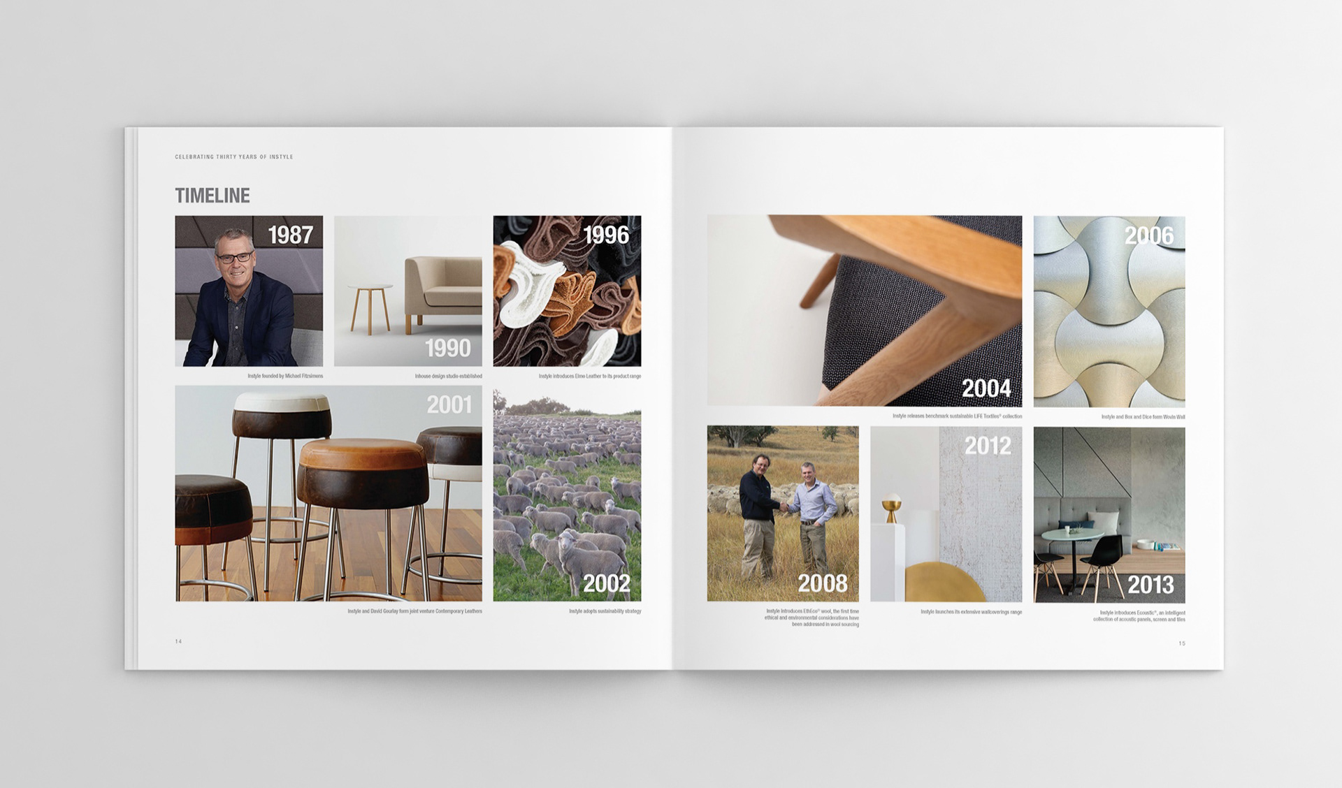 Coffee table book created to celebrate the 30 year anniversary of INSTYLE, supplier of high-quality interior finishes.
