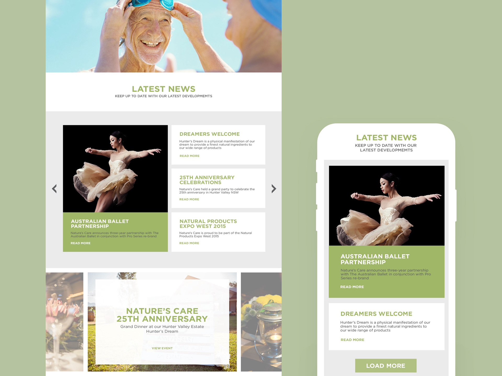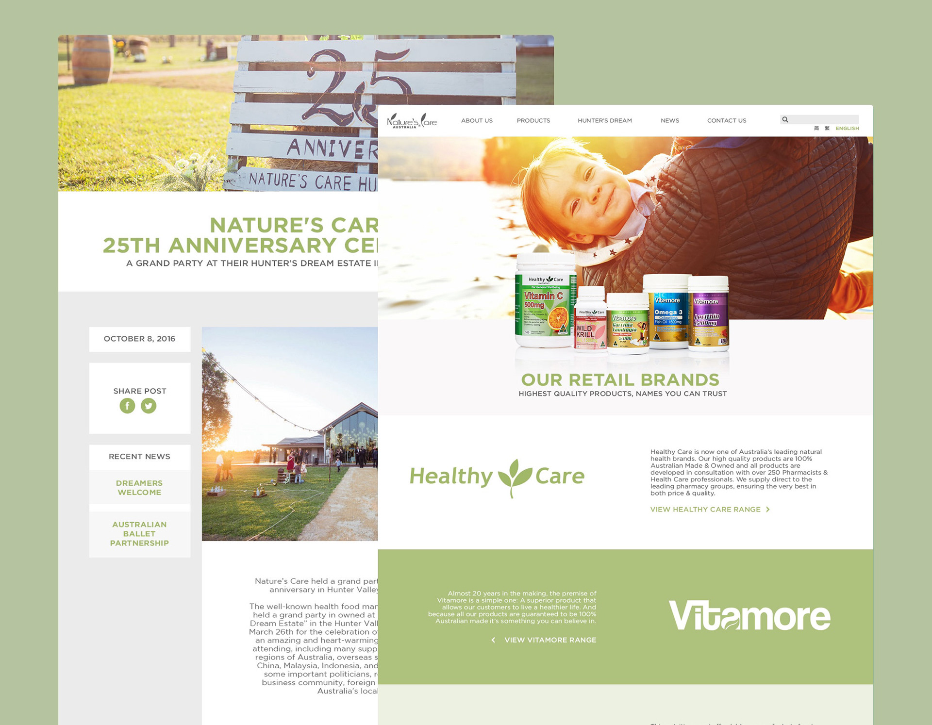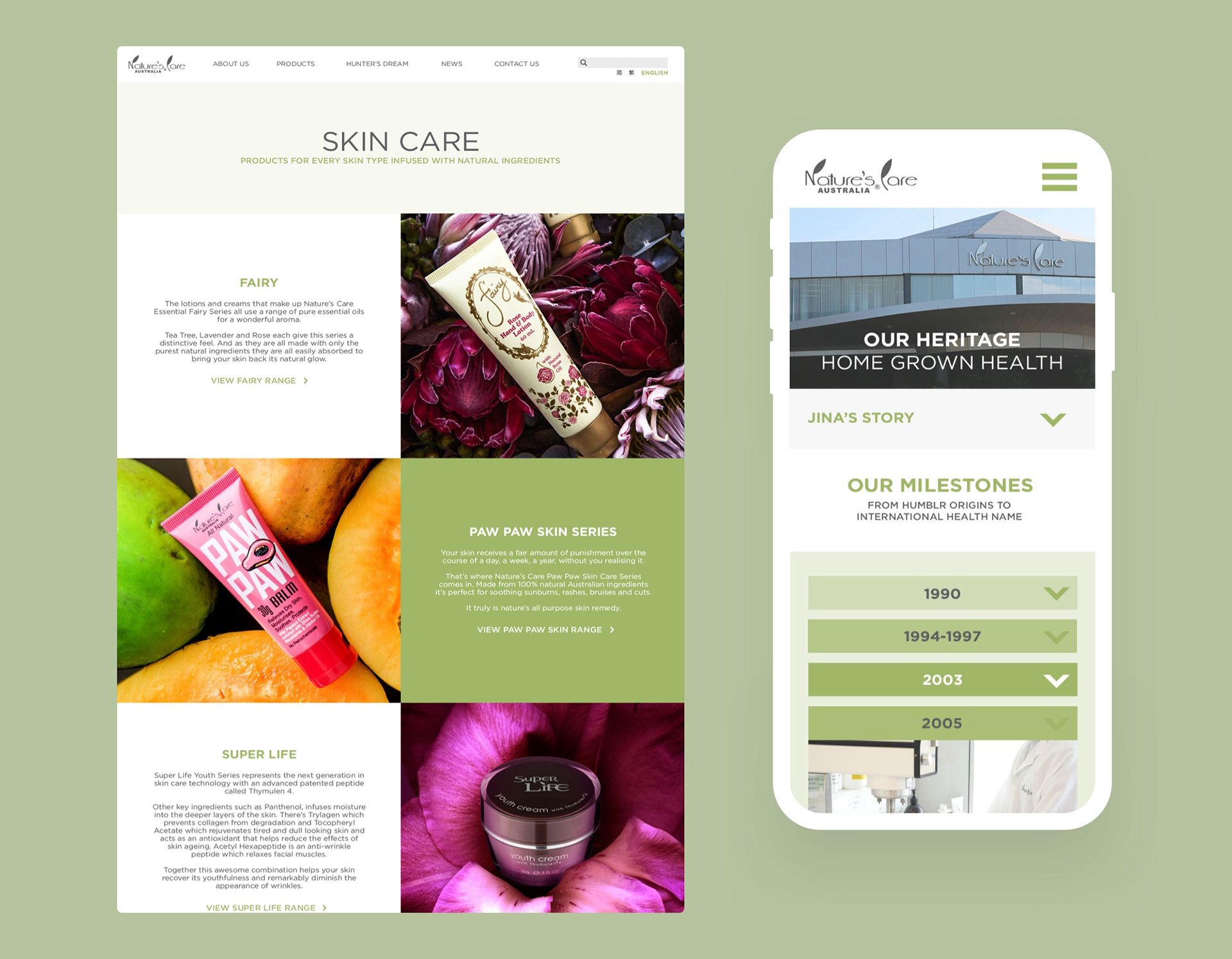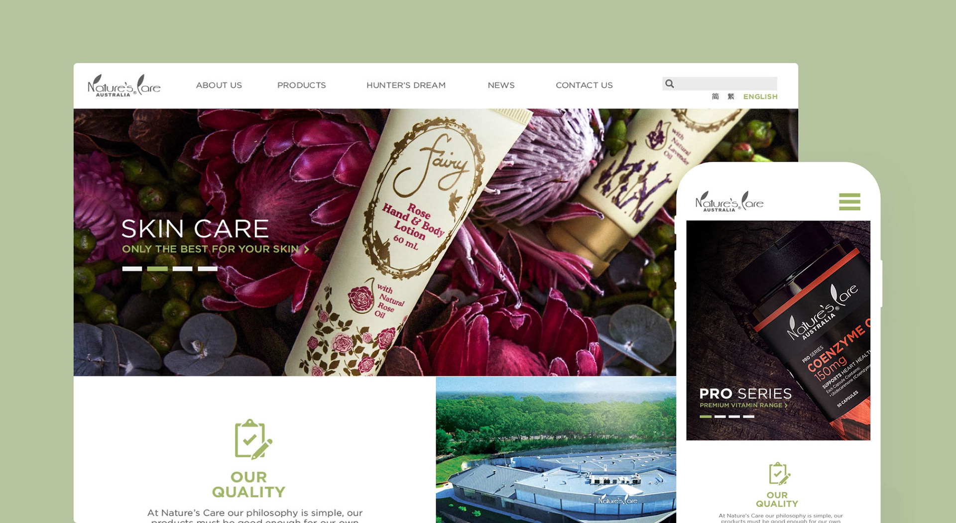 Corporate website redesign for Nature's Care, an Australian health supplement and skincare parent company.