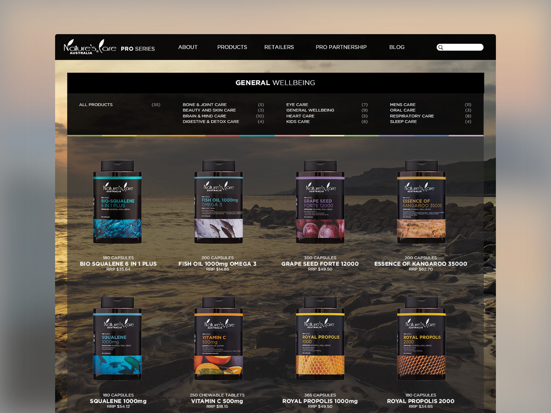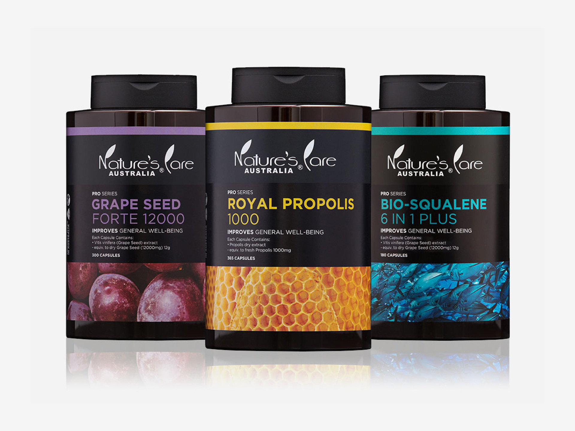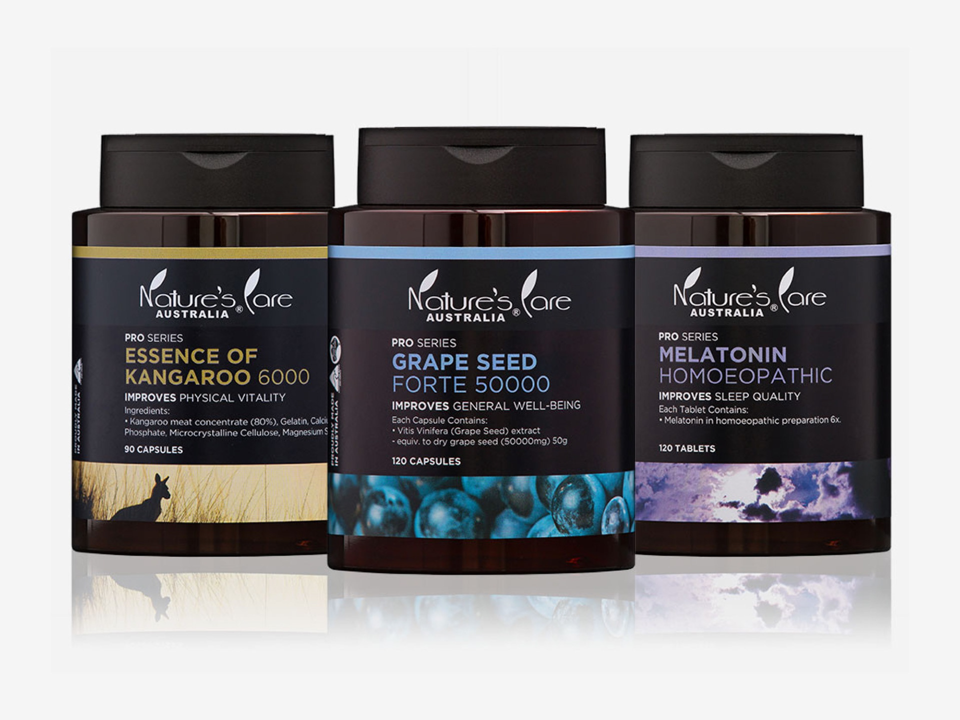 Packaging and website designs for the new Pro Series selection of vitamins and beauty products by Nature's Care.