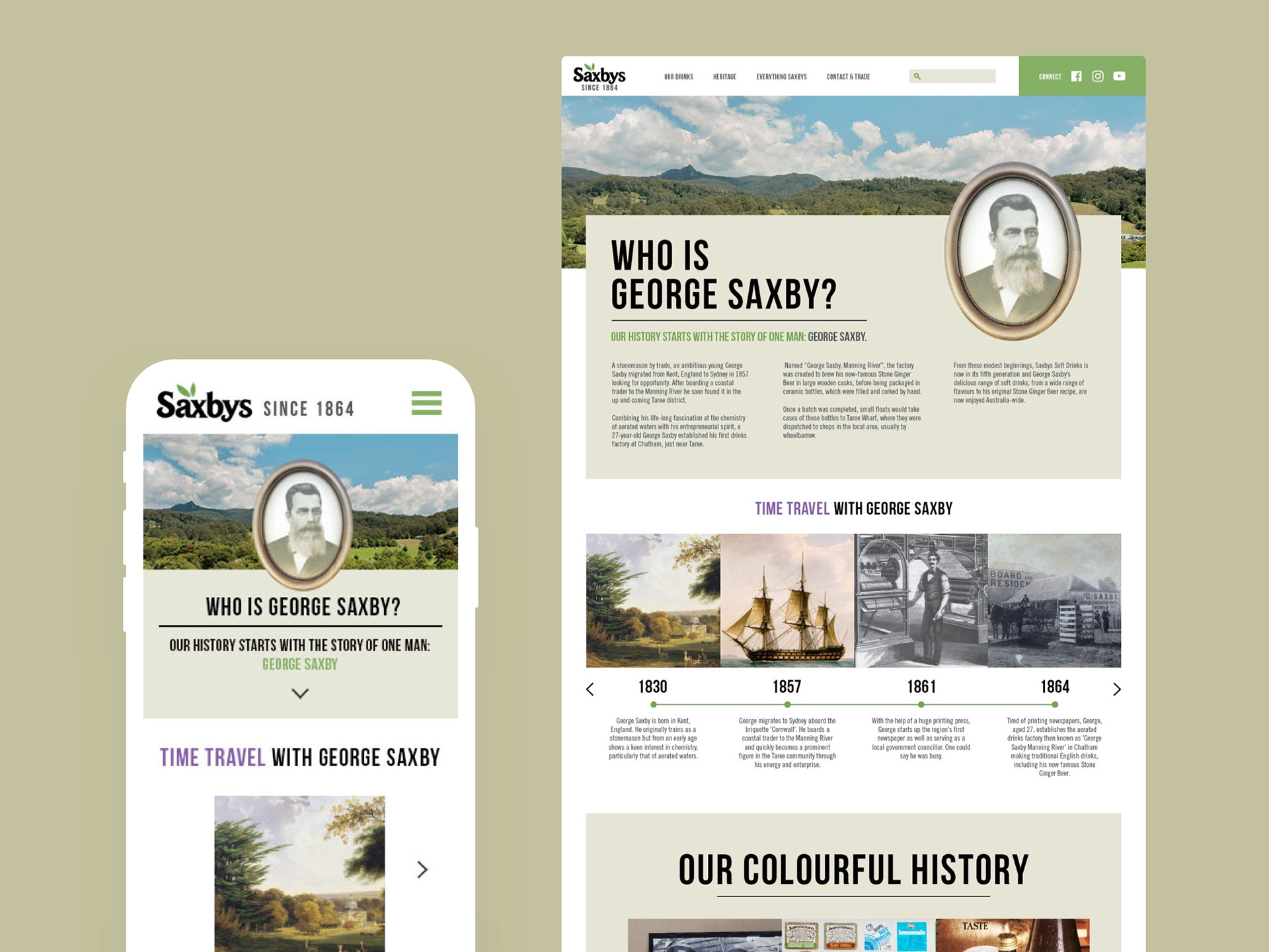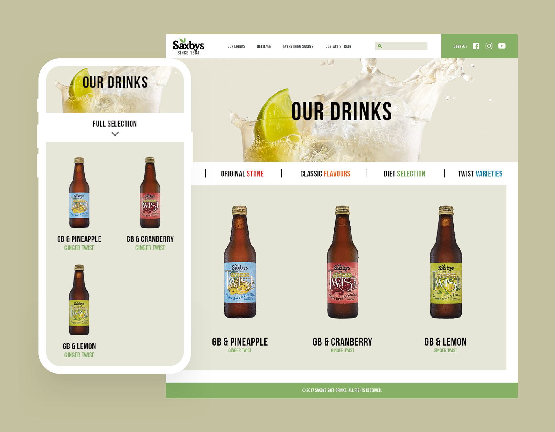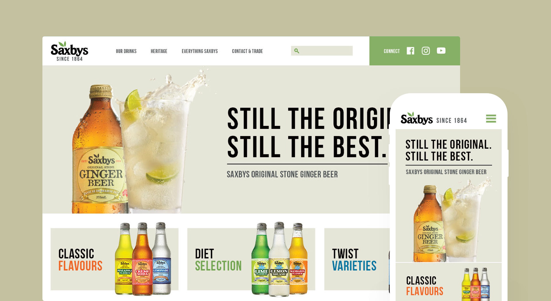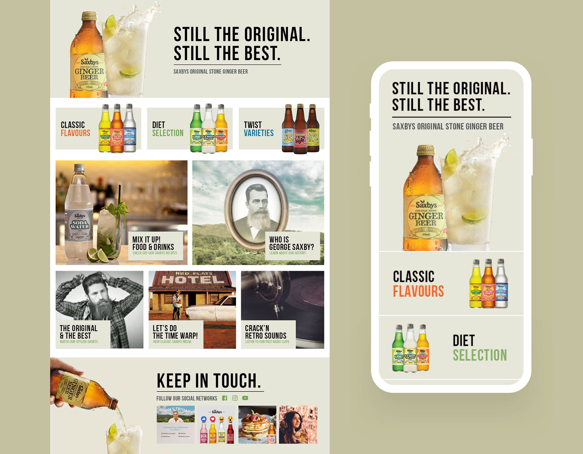 Website redesign for Saxbys soft drinks to coincide with their latest 'Beware of Imitations' campaign.